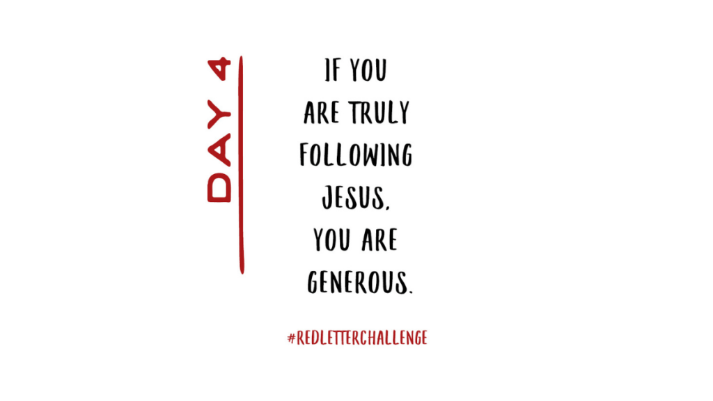 In the fourth full week of the Red Letter Challenge, we will see that Jesus challenges his followers to be generous. The more I read the words of Jesus, the more I’m convinced it’s impossible to be a stingy Christian. We cannot follow Jesus well and at the same time ignore his teaching on money. If you are truly following Jesus, you are generous.