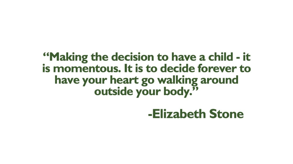 Yet, being part of a family has also been a great challenge in my life. From the moment you become a parent, you are a parent forever, and that means that you hurt whenever your children hurt. Former President of the American Library Association, Elizabeth Stone, said, “Making the decision to have a child – it is momentous. It is to decide forever to have your heart go walking around outside your body.”