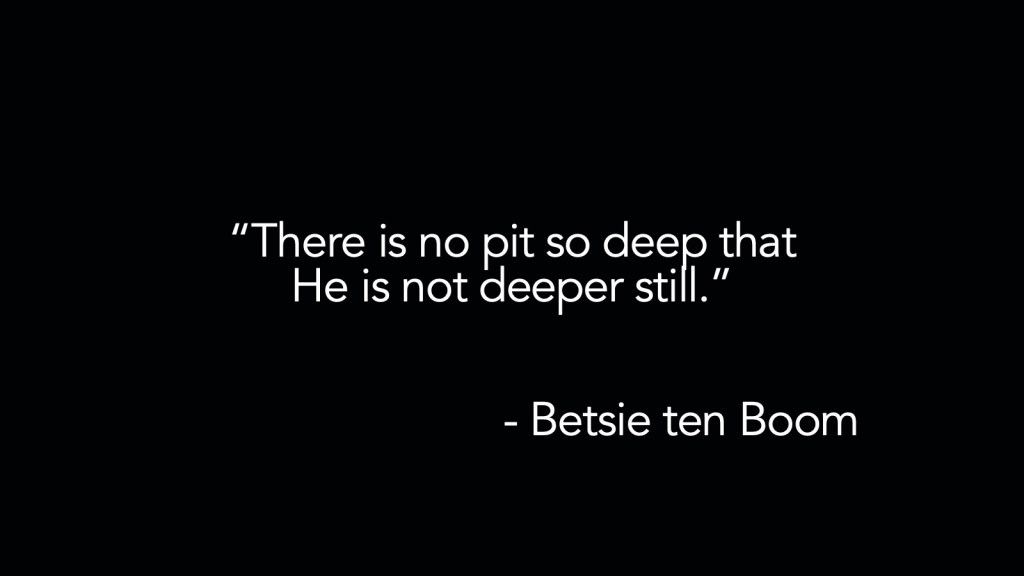 Corrie ten Boom and her family were sent to a Nazi concentration camp during World War II for hiding Jews in their home. Many members of her family, including her dear sister, Betsie, died. Before she died on December 16, 1944, Betsie said to Corrie, “There is no pit so deep that He [God] is not deeper still.” Twelve days later, Corrie was released due to a clerical error. A week later, all the other women in her age group were sent to the gas chambers.