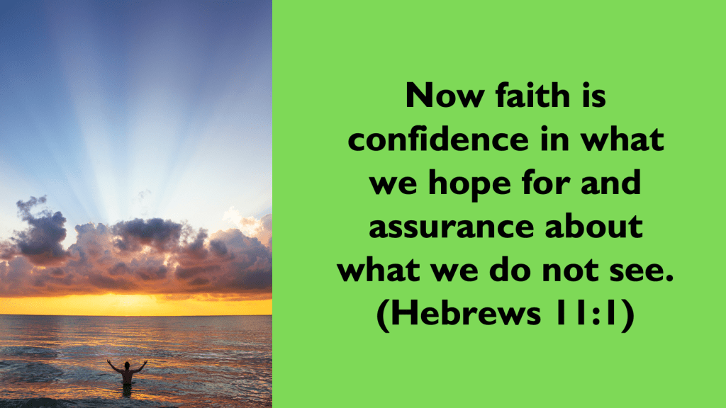 What does that mean for us? We live with confident faith trusting in Jesus and the saving work that he has done for us and all creation. And we live like God’s faithful people in Old Testament times. We live by faith and not by sight.