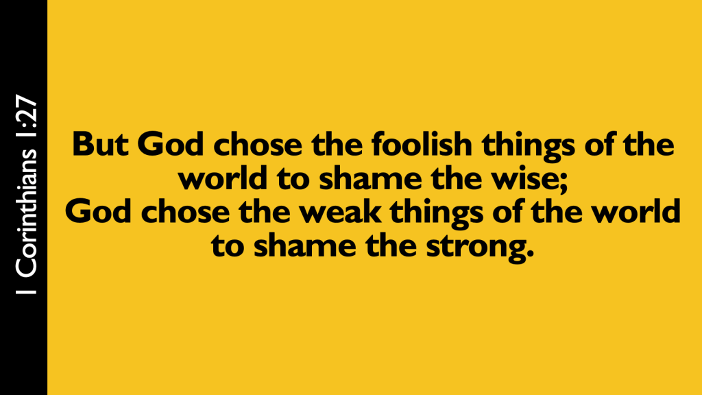 But the one, true God does not operate according to human ways of thinking. He has a much bigger picture in mind than who will win victory on the battlefield today, and the tools he will use to accomplish his end goal are not the ones we humans invariably choose, namely power and fear. Instead, God often works through weakness, because weakness is the way of faith. You don’t need to have faith if you have power. You can simply make happen whatever you want done. You don’t need to have faith if you can make people fear you. If you simply threaten them in the right way, they will do whatever you want.