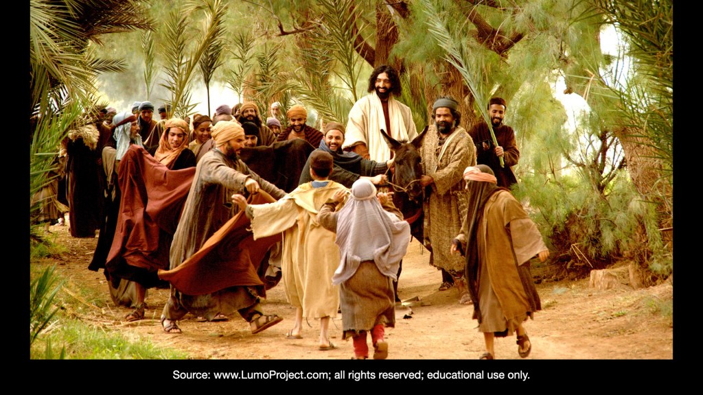 What we find described for us as we turn there is Jesus’ triumphal entry into Jerusalem. It is the week of Passover, one of the most important festivals in the Jewish religion. Because Passover, along with Pentecost and the Festival of Booths, was one of the three pilgrimage festivals which every adult Jewish male was required to attend, pilgrims from all over the Holy Land flocked into Jerusalem and camped in and around the city. They were gathered to celebrate and remember the most important event in all of Jewish salvation history, the night when the angel of death passed over every house marked with the blood of the Passover lamb. That same angel of death visited every home that wasn’t marked with the blood of the lamb, and the first-born sons of all those homes died that night. That was the event that prompted Pharoah to set all the Hebrew slaves free. The salvation and the loss people experienced were not based on the ethnic distinctions of Egyptian or Israelite. They were based on whether or not you paid attention to the commands God gave through Moses and followed them.