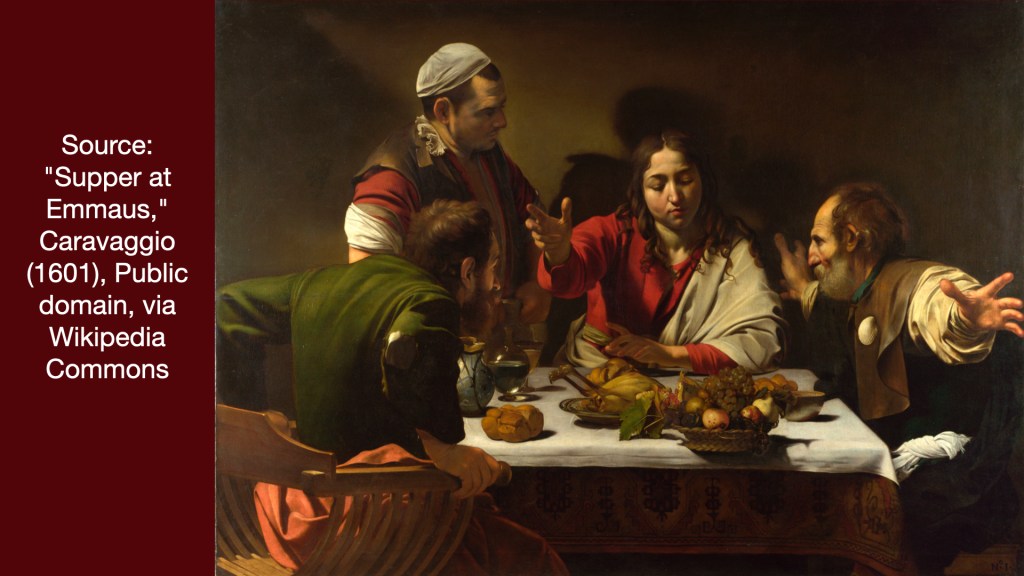 So perhaps it is no surprise that Jesus should share in the specialness of mealtime with those two weary and grieving travelers from Emmaus. But note that it was only Jesus was leading, blessing, and serving them in a context where they were used to receiving that they recognized who he really is. Before that, their ruling beliefs did not allow for a resurrection in the middle of time. They believed in a resurrection at the end of time, but not in what was their here and now. And because their ruling beliefs did not allow for a resurrection in the middle of time, the best that they could do is see Jesus as a great prophet and interpret his death as a great loss. The hope they had for redemption was lost, and their lives were clouded by grief as a result.