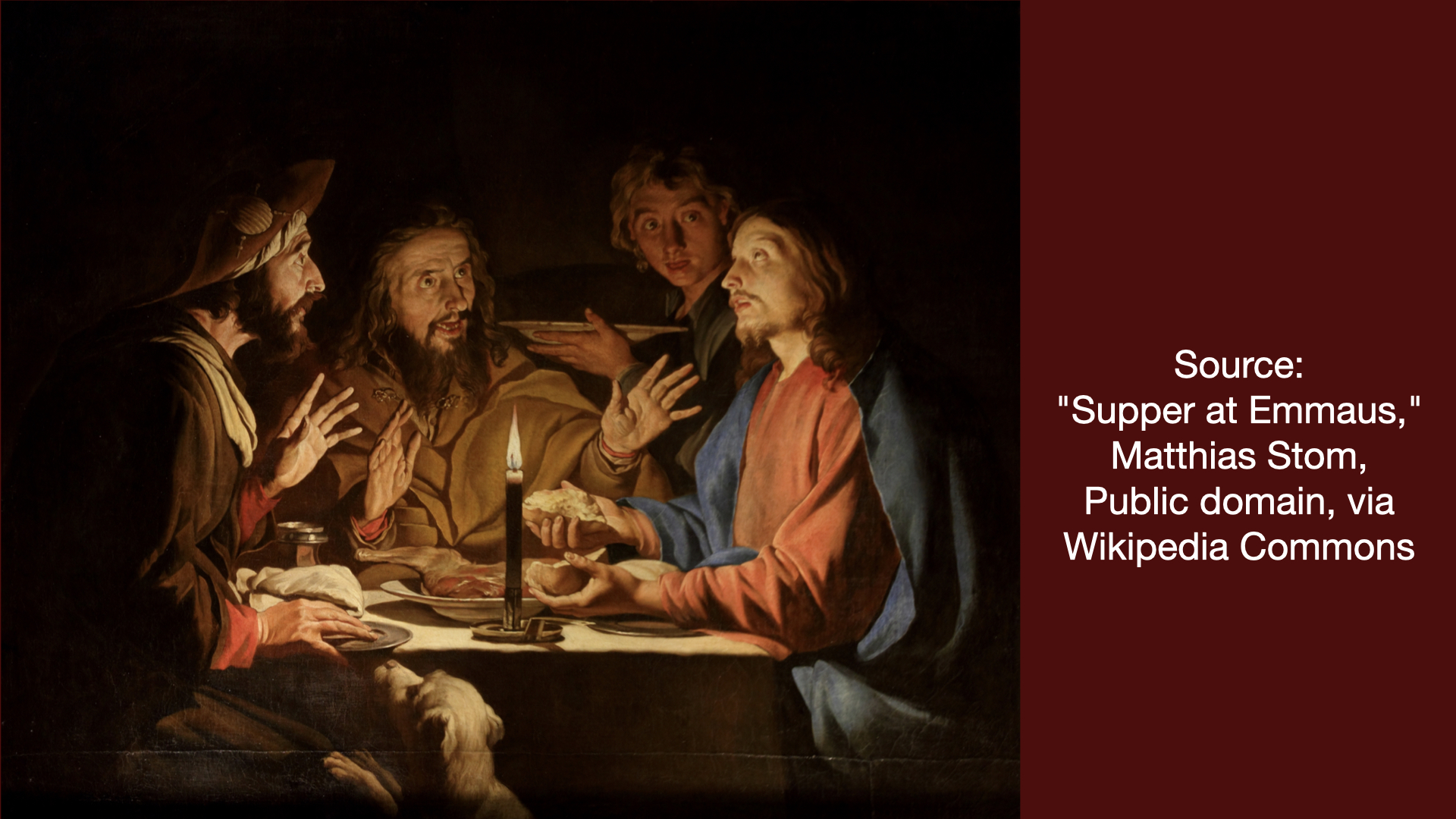 So perhaps it is no surprise that Jesus should share in the specialness of mealtime with those two weary and grieving travelers from Emmaus. But note that it was only Jesus was leading, blessing, and serving them in a context where they were used to receiving that they recognized who he really is. Before that, their ruling beliefs did not allow for a resurrection in the middle of time. They believed in a resurrection at the end of time, but not in what was their here and now. And because their ruling beliefs did not allow for a resurrection in the middle of time, the best that they could do is see Jesus as a great prophet and interpret his death as a great loss. The hope they had for redemption was lost, and their lives were clouded by grief as a result.
