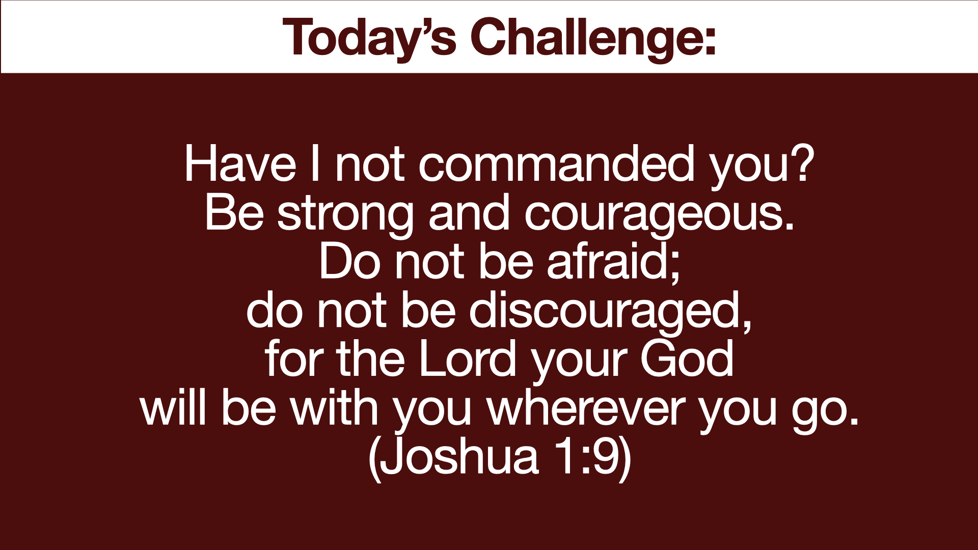 Dear friend, the ruling beliefs in our hearts are revealed by two things: what causes us to be afraid and what brings us joy. With the risen Jesus Christ living in our hearts, there is no reason for any of us to be afraid about anything. With the risen Jesus Christ living in our hearts, we have a source of unending joy within us, not because our circumstances are good, but because Jesus is good, and he is with us. Therefore, the challenge that I am setting before you today is from Joshua 1:9, and please understand these words as God speaking to you, not me: