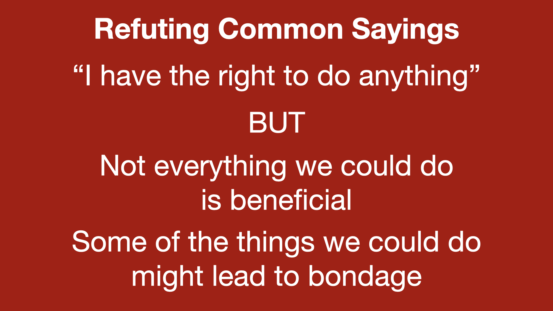 The first common saying that Paul refutes is, “I have the right to do anything.’