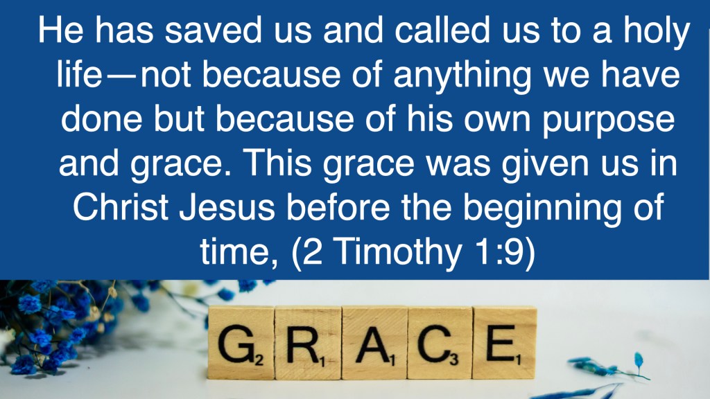 And so, what is grace? Well, grace is God’s love and favor for us, even when we are far from Him. And this passage tells us that God was giving us grace before the world was even created, when you were just a thought in His mind. We see a bit of what this grace looks like in Romans 5:8, where we read, “But God demonstrates His own love for us in this: While we were still sinners, Christ died for us.” (Romans 5:8) So, it’s not because of anything that we’ve done or any action on our part that we deserve God’s love and favor. He’s simply giving it to us because of who He is – a loving and gracious God. Grace was what motivated God to save us and give us life with Him.