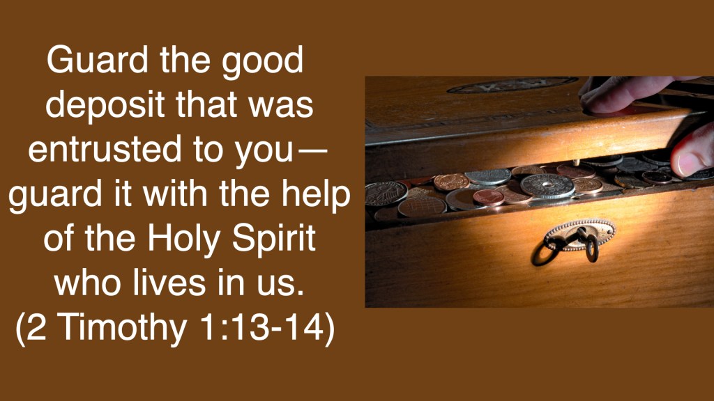 “What you have heard from me, keep as a pattern of sound teaching with faith and love in Christ Jesus. Guard the good deposit that was entrusted to you. Guide it with the help of the Holy Spirit who lives in us.” (2 Timothy 1:13-14) Amen.