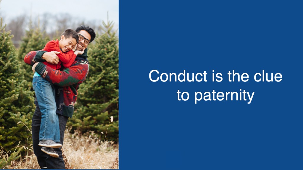 Have you ever been in an argument with someone you love and they say to you, “You sound just like your dad!” (or your mom) and they don’t mean it as a compliment? You are in a moment of stress and you are drawing on the parentage that you have been given. So we can see that Conduct is the clue to paternity. How we behave tells people who our parents are.