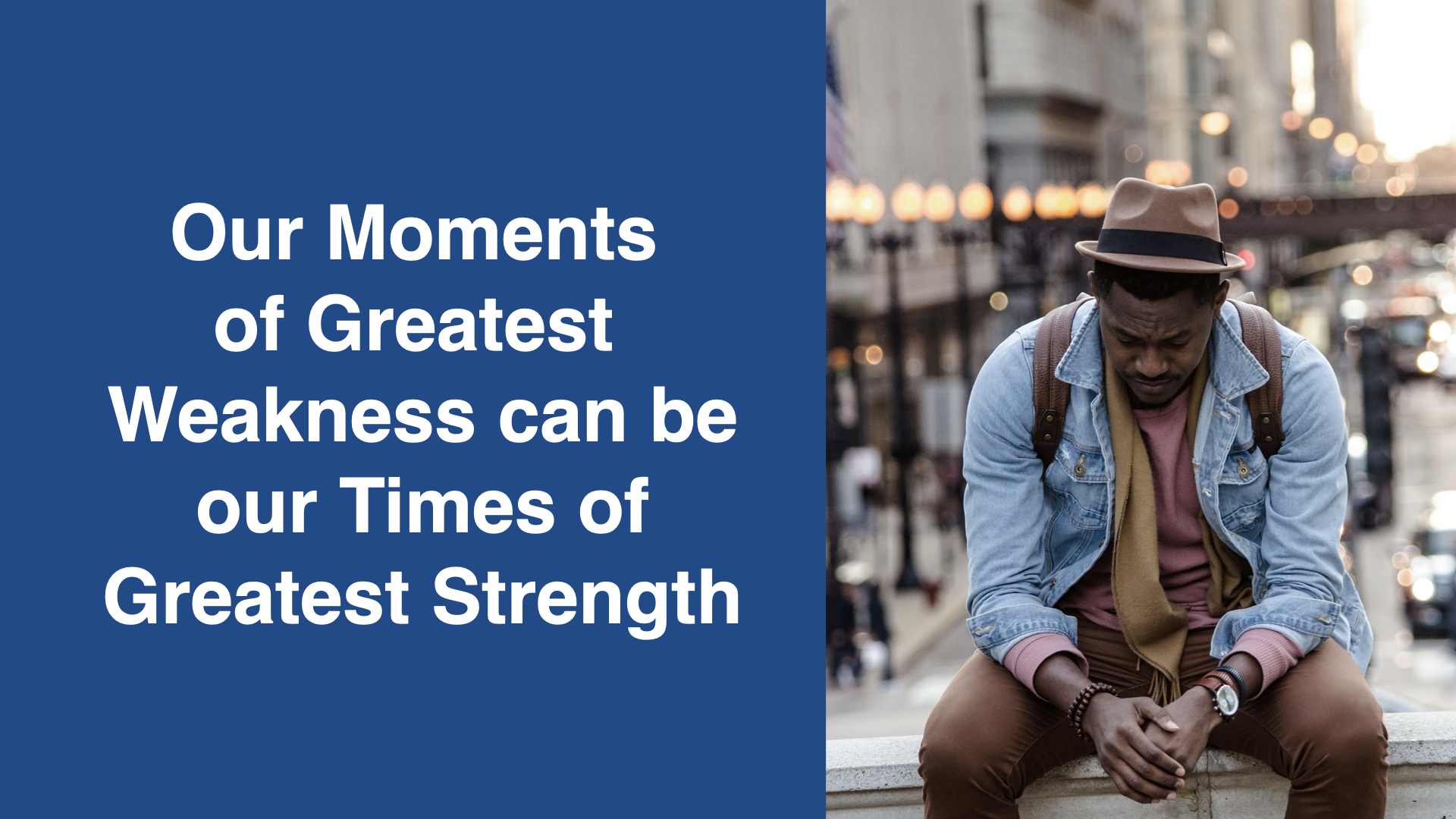 And so, what does all of this mean for us? Our moments of greatest weakness can be our times of greatest strength. An overwhelming challenge forces us to abandon our own strength and then cling to God and his strength, because, to be honest, we have no other choice. Our resources and our strength will not get us through what’s before us. So, we fall into the arms of God and trust Him to carry us through whatever it is that we’re facing. And then we realize that that turning away from our own strength and resources and trusting in God to carry us is actually the best way to live all the time, on a moment-by-moment basis.