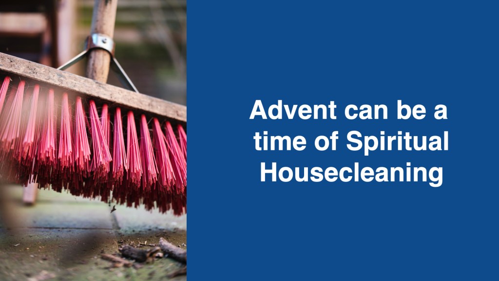 So, how can we cultivate that kind of reliance, that kind of trust in God on a daily basis? Well, Advent can be a time of spiritual housecleaning. We tend to think that Advent is all about the lead up to Christmas, but it is more like the season of Lent, a time of preparation. We’re preparing not only to celebrate when Jesus came again, we’re also preparing our hearts for when he’s going to come again. And so, just like we clean up our houses and rearrange things and get rid of stuff that we realize we don’t need anymore, we can do the same things in our lives.