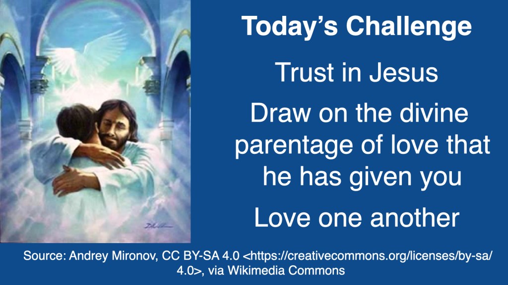 As we learn to live our lives with the knowledge and awareness that God is indeed our Father–that he indeed loves us, that he is providing for us, protecting us, preserving and guiding us, and that he only wants what is best for us–that’s the parentage we can draw on that will help us to be people of peace.