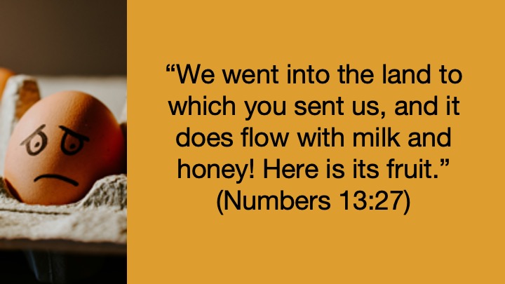 With the passage we are looking at today, God’s people are on the verge of entering the Promised Land and taking possession of it, and to help them as they prepare to do that, God instructed Moses to send one leader from each of the twelve tribes of Israel to explore that land, which was the land of Canaan. Moses instructed these twelve scouts to see what the land was like—was it fertile or barren?—and to see what the people in the land were like—were they numerous, well-armed, and living in strongly fortified cities, or were they few in number, poorly-armed, and were their cities vulnerable to attack? This was critical information for the Israelites to have as they prepared to invade. Charged with this very important task, the twelve spies left. Over the course of forty days, they thoroughly explored the land and then came back, carrying with them some of the fruit of the land: grapes, pomegranates, and figs.