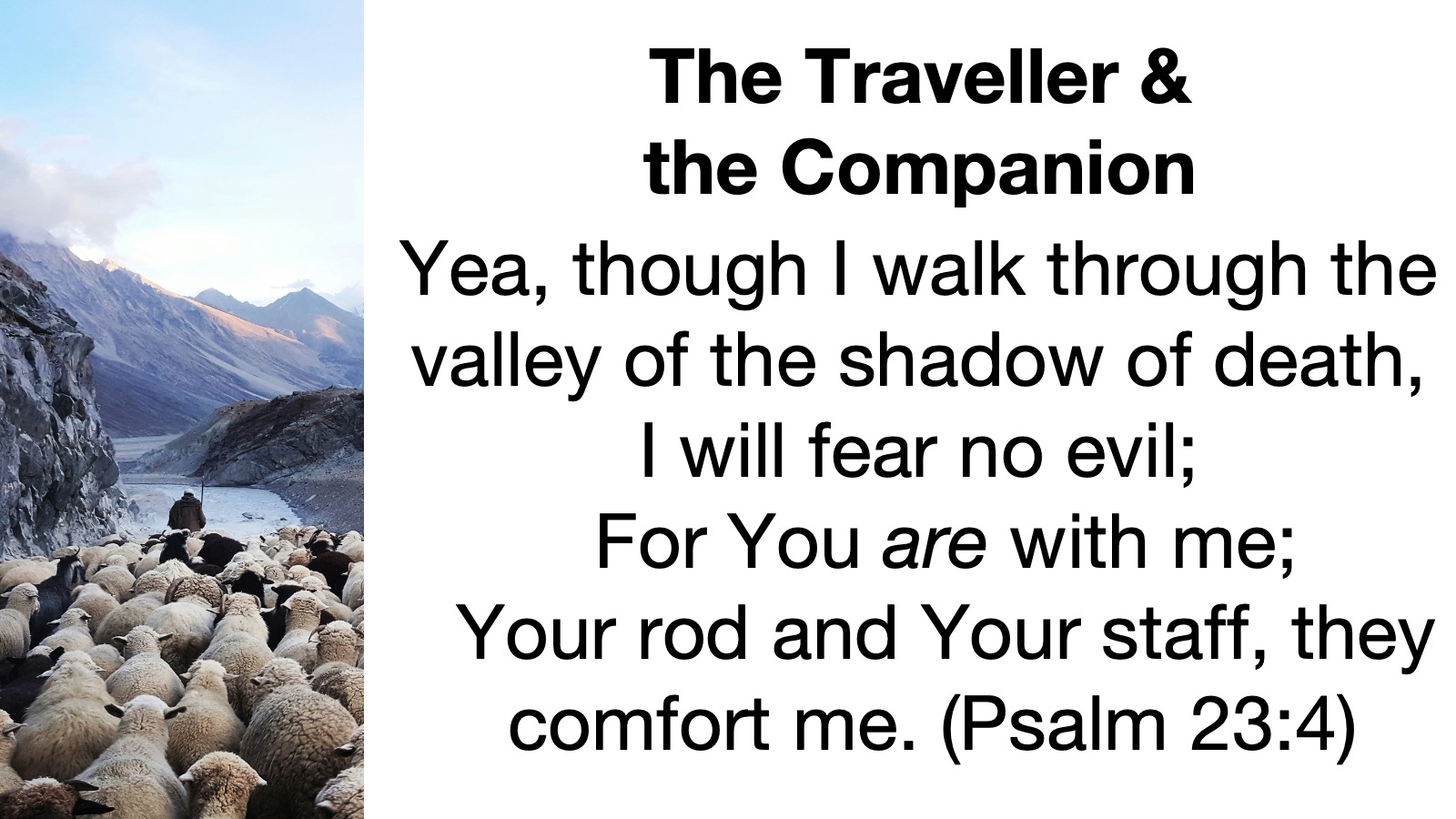 The second relational metaphor is the traveler and the companion. In verse four we read, “Yea, though I walk through the valley of the shadow of death, I will fear no evil; for You are with me; Your rod and Your staff, they comfort me.”