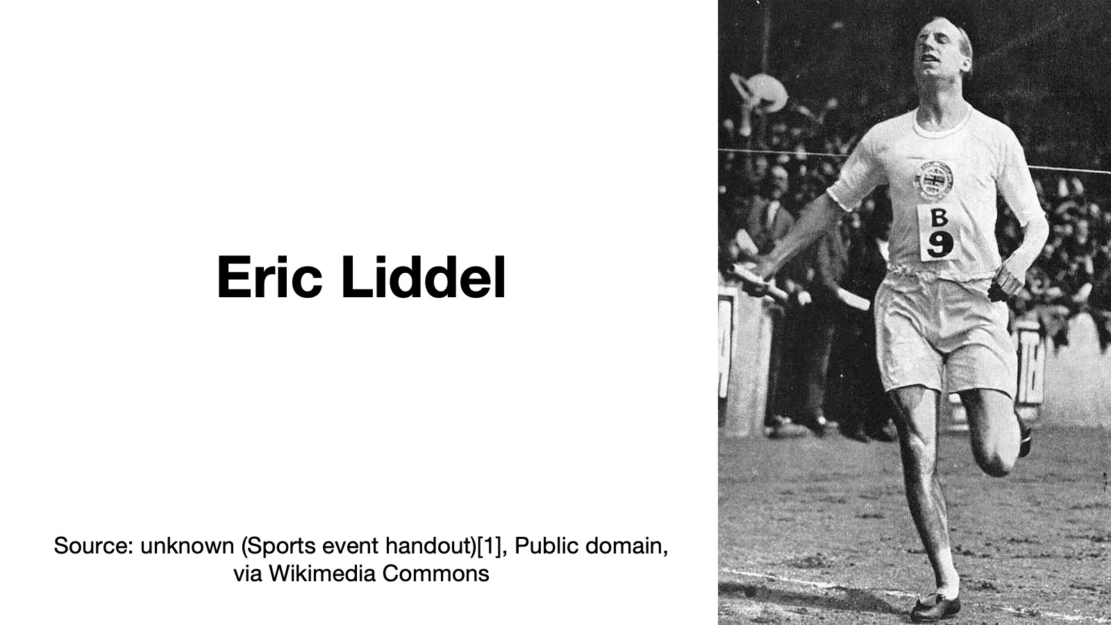 One hundred years ago this year, the Olympics were also in Paris. One of the athletes who attended those games was Scottish sprinter, Eric Liddel. He was born in China to Scottish missionary parents. He attended boarding school in London, and then went to the University of Edinburgh for his post-secondary education. Because of his Christian faith, Eric refused to run the 100-metre race at the 1924 Olympic Games, because those races were being held on a Sunday. Instead, he ran the 400-metre race on a weekday and won. The year after the Games, Liddel returned to China as a missionary teacher. There he died, twenty years later, at the age of 43, in a Japanese internment camp.[ii]