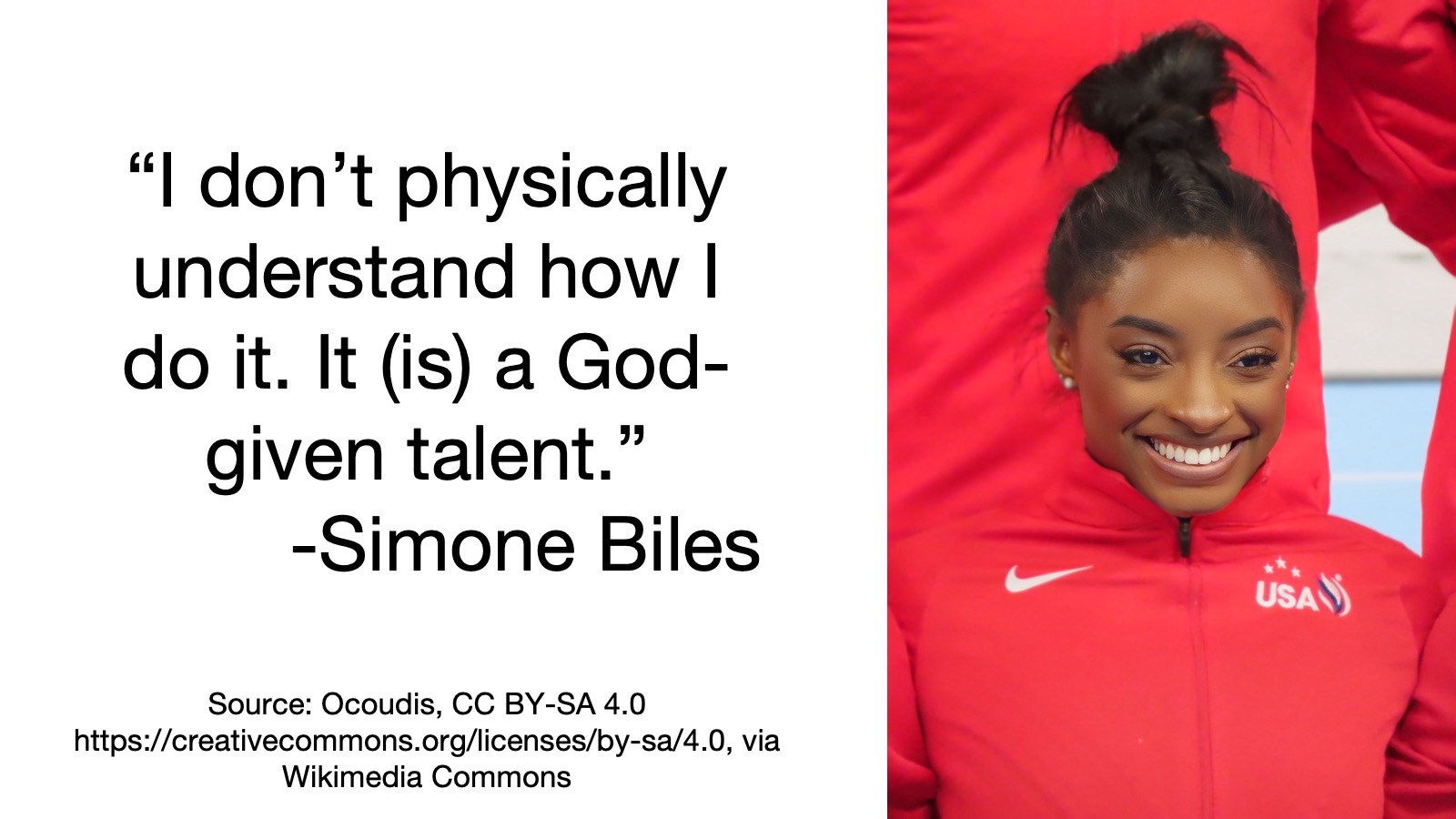 So how did Simone overcome all these challenges to become the greatest gymnast of all time? Simone was introduced to Christianity by her grandparents and faith became, and still is, very important in her life, and she credits God for her success. In an interview she did in 2021, Simone said, “I don’t physically understand how I do it. It (is) a God-given talent.”[i]
