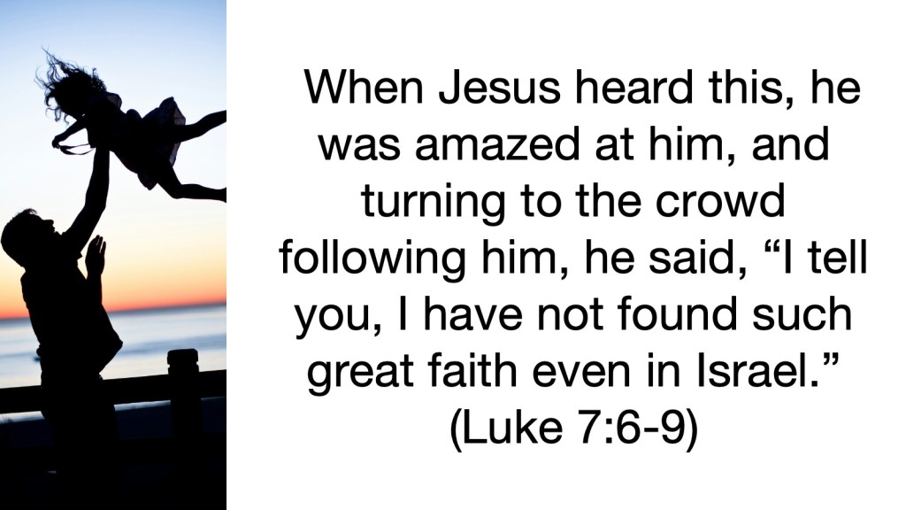 9 When Jesus heard this, he was amazed at him, and turning to the crowd following him, he said, “I tell you, I have not found such great faith even in Israel.” (Luke 7:6-9)