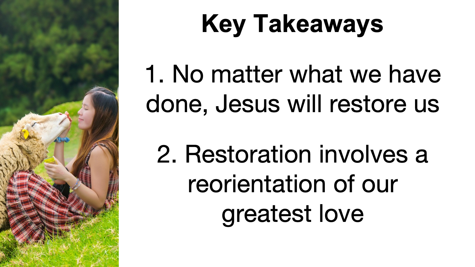 We have no clear answer, but it could be that Jesus was deliberately being vague to include anything that we might possibly love more than him. You see, when Jesus restores us, he doesn’t want to simply take us back to where we were before. He wants to use the shameful experience we went through to bring us to a better state where we are built up and strengthened in faith, hope and love. That’s why, before we go ahead with Jesus, we need to go back with Jesus, back to the root cause of our shameful derailment, which is always loving something else more than Jesus. And, as Jesus restores us, he gently recalibrates and reorientates our love so that our heart is once again focused on him as our greatest love. Then as Jesus’ love for us has its way in our heart, we are drawn deeper and into the rich, full, abundant life that he wants to give to us.