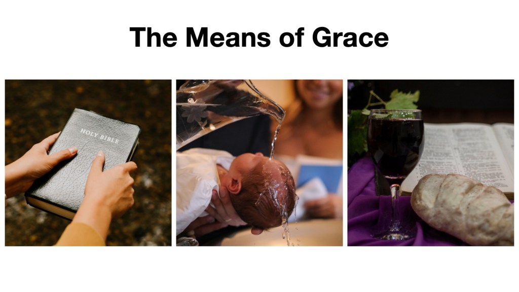 For the answer, we need to turn to the first part of this letter where Paul writes, For the Spirit God gave us does not make us timid, but gives us power, love and self-discipline. (2 Timothy 1:7) Our faith in Jesus not only saves us from sin, death and condemnation, it enables us to live as one of his people in this world with courage and strength. But this courage and strength is not our possession. When we believe in Jesus as Lord, we switch from living an independent life to living our one and only life fully dependent on God the Father, Son, and Holy Spirit. The Holy Spirit gives us the power, love and self-discipline we need to think clearly and endure hardship, and the Holy Spirit works through what we call the Means of Grace, God’s Word, the Bible, Holy Baptism and Holy Communion.