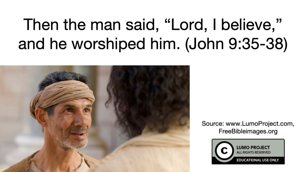 Then the man said, “Lord, I believe,” and he worshiped him. (John 9:35-38)