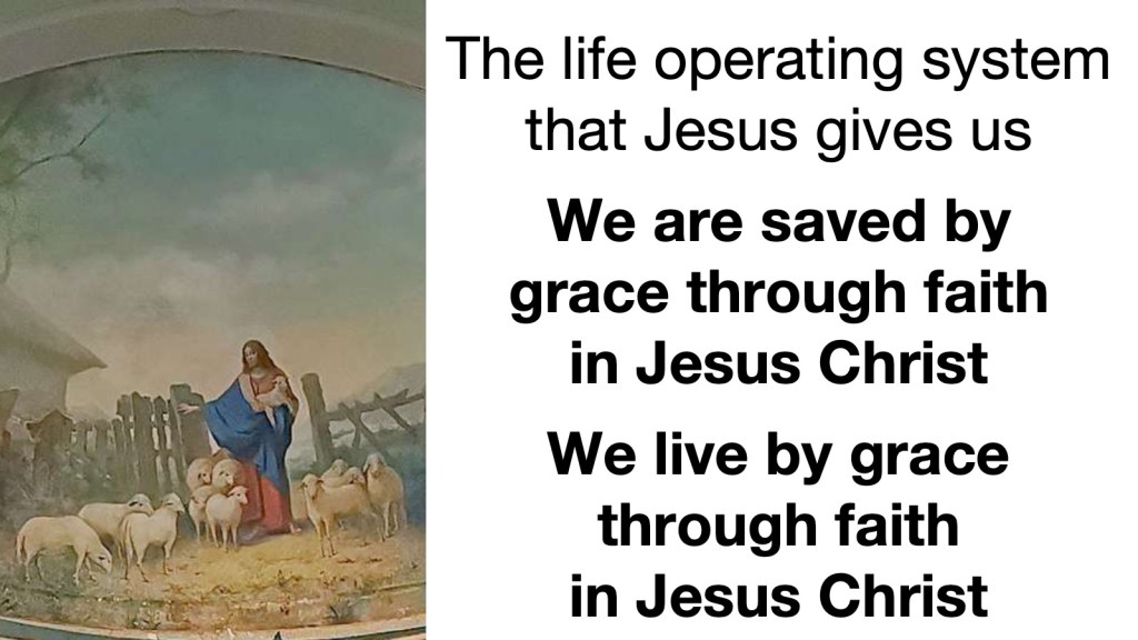 There is a lot of tumult in the world around us, but there doesn’t need to be tumult in the hearts of God’s people. And now is a time when the world needs followers of Jesus to keep their heads about them, even when all others are losing theirs. How do we do that? By embracing the life operating system that Jesus gives us. What is that life operating system? Simply this: we know that we are saved by grace through faith in Jesus Christ, therefore we live by grace through faith in Jesus Christ. We know that Jesus is our Good Shepherd, and we follow Him. Amen.