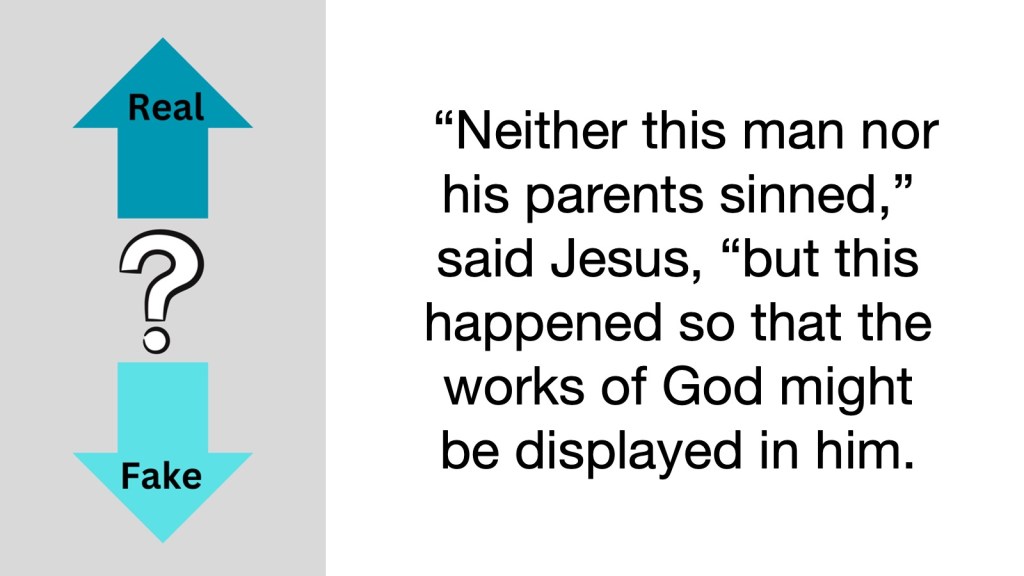 On top of all that, there is a smorgasbord of options from which we could choose our personal life operating system, and they’re not all of equal quality. Some of them have to be counterfeit because some of these options are in conflict with each other. They cannot all be true—some have to be false. So then the question I am inviting you to think about today is: How do we figure out how to choose a life operating system that is both real and reliable? As we consider this question together, we’re going to dig into John chapter 9 and 10. nine and chapter ten. If you have a Bible or a Bible app nearby, I invite you to turn there now.
