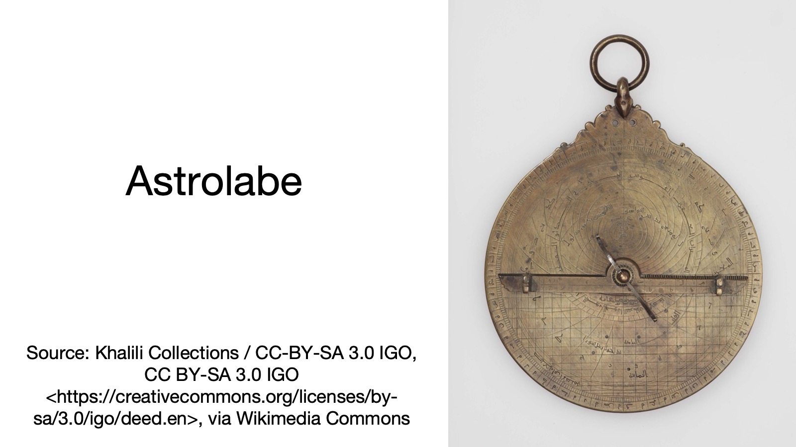 So, in ancient times, the Persians invented something called the astrolabe. It seemed to be lost for a while to Western civilization, but it was preserved through ancient Greek civilization and then by the Arabic Muslim culture, first in Baghdad and then in Spain. Eventually, it came to Latin Europe around the 13th century, and it became quite popular. People were writing books about it all over the place. Apparently, Chaucer even wrote a book, or was thinking about writing a book, about the astrolabe.