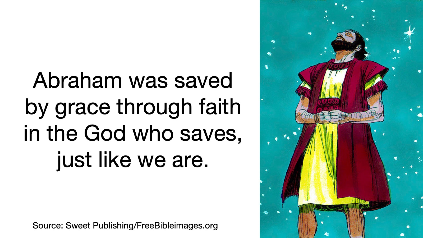 What Paul is trying to tell us is that Abraham was saved by grace, through faith in the God who saves—just like you and I are today.