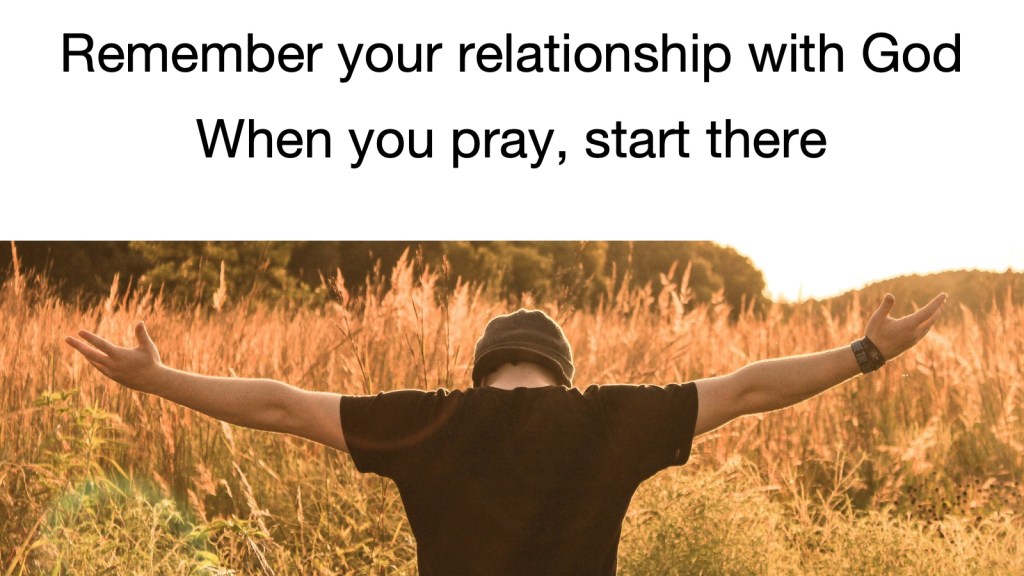 Therefore, here is the challenge I am setting before you today: Forget any flowery formulas you may have for prayer. Instead, remember your relationship with God. Because of Jesus, he is your Father and you are his child. When you pray, start there and the rest will naturally flow from there. For when our prayers are focused on the relationship with God we have through Jesus, it transforms how we see God and how we see ourselves. Amen.