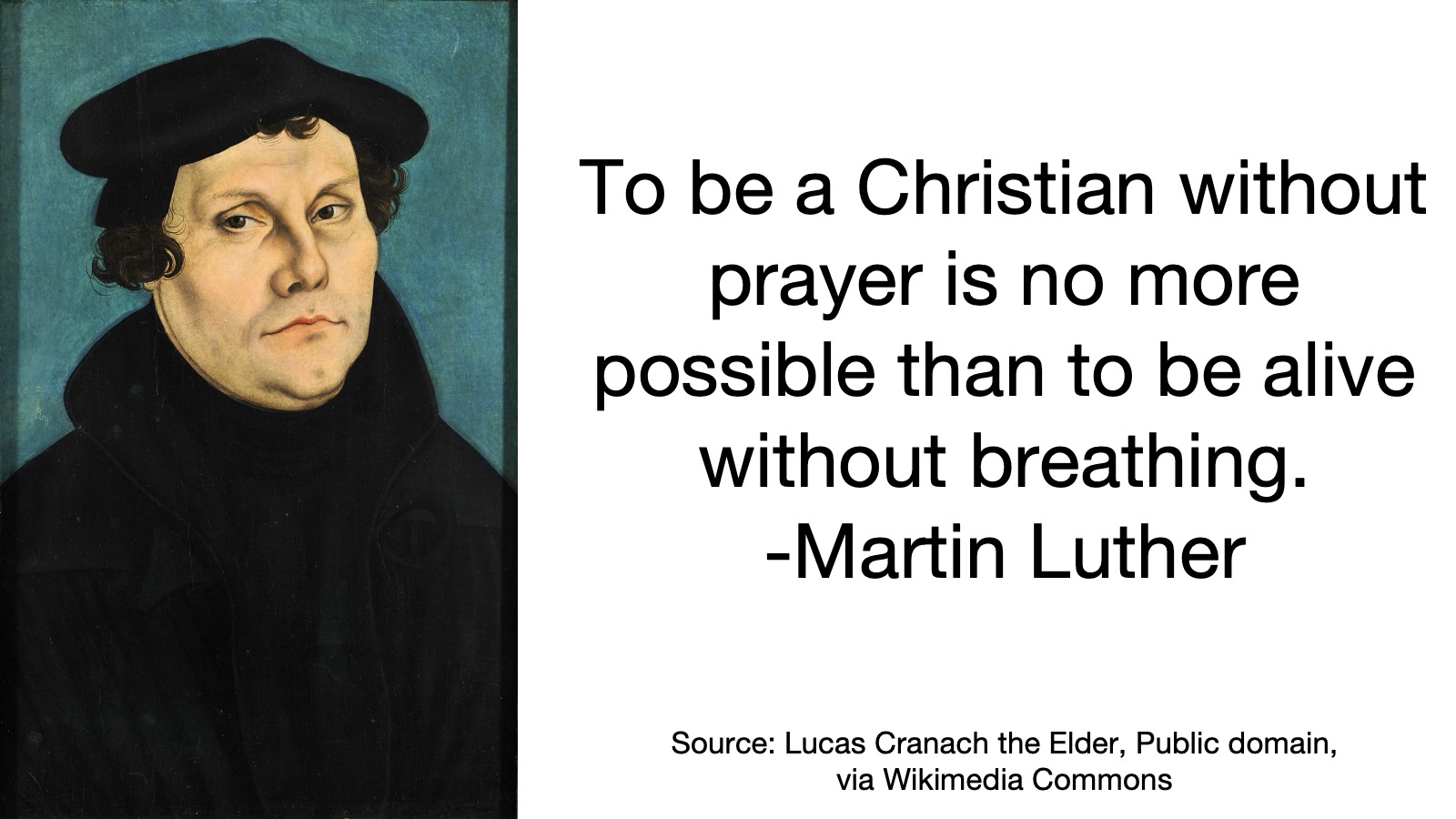 To counter our innate tendency to try to live our life in our own power, we need going, interactive conversation with God to guide, encourage and empower us in the life we have as his child. I think that is why Martin Luther said, “To be a Christian without prayer is no more possible than to be alive without breathing.” It is through prayer that we learn again and again, that we have a gracious and loving Father who loves to generously give his children good gifts, like the gift of Jesus, the gift of the Holy Spirit, and the gift of life in God’s kingdom as his beloved, forgiven child. It is through prayer that we see that, through Jesus, God’s kingdom has already come to us and the life we are living right now is being lived before our Father in heaven, even as we live that same life before humanity on earth.