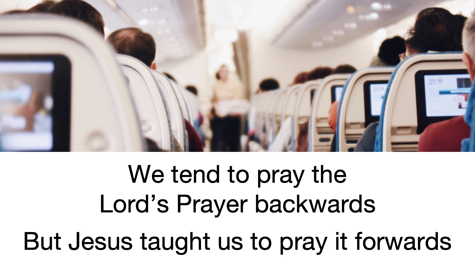In an issue of CT Magazine, Pastor Andrew Wilson described his reflections on prayer after he and his wife were on a flight that was caught in severe turbulence on final approach to land. People began crying out to God and Pastor Wilson was fascinated by the content of those prayers. After the plane landed safely, he realized that we humans tend to pray the Lord’s Prayer backwards. The most common petitions he heard were variations of “Deliver us from evil.” People were exclaiming, “Help!”, “Save us!” and “Please don’t let me die!” Less frequently, he heard people cry some form of “Forgives us our sins” as people said, “I’m sorry” and “God, please forgive me.” Then came prayers like, “Please, keep my children safe”, or “Please, provide for my family.”