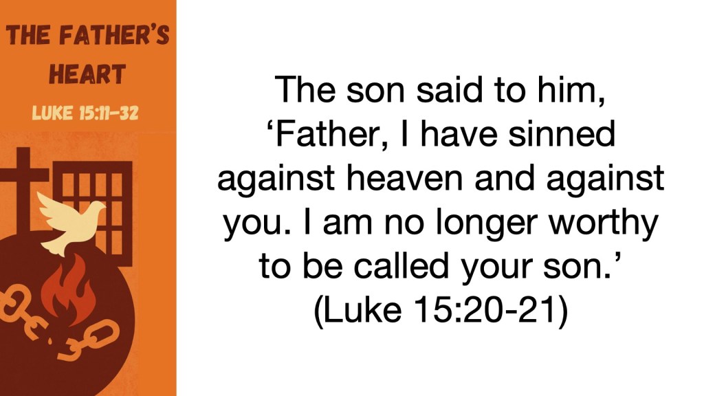 But while he was still a long way off, his father saw him and was filled with compassion for him. He ran to his son, threw his arms around him and kissed him. The son said to him, “Father, I have sinned against heaven and against you. I am no longer worthy to be called your son.”