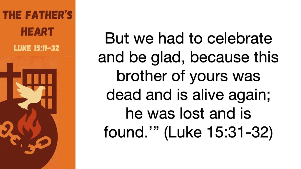 And He’s inviting you to join in the celebration and be caught up in the overflow of God’s love—for those younger children, your younger brothers, and your older brothers alike—