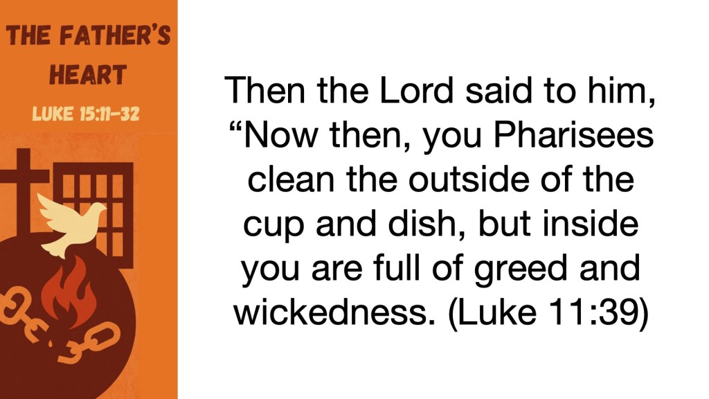 And here’s the problem that they had—a problem that was revealed by Jesus when He said to them, “Now then, you Pharisees clean the outside of the cup and dish, but inside you are full of greed and wickedness.”