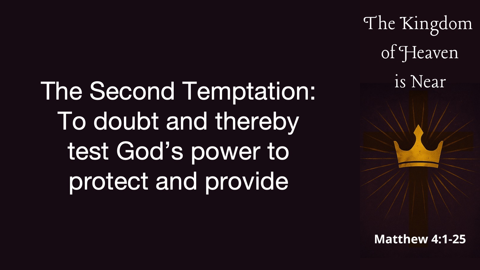 But what if God has something better for us? What if God wants to give us a King who has proven his ability to protect us and help us flourish? What would that look like? Well, as we think about that question, what we’re going to do is look at Matthew 4:1-25.