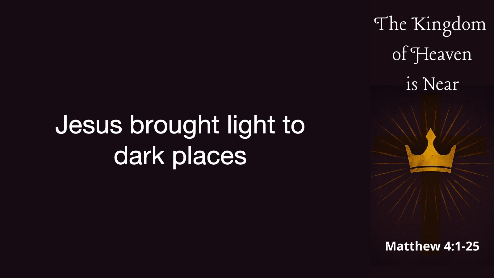 Continuing in Matthew 4, we come to the ministry of Jesus, and Jesus does some very special things as he begins to serve people. First, Jesus brought light to dark places. After completing his time of temptation in the desert, he immediately went up into the north to the area around Galilee, an area called Zebulun and Naphtali. This was an area that was absolutely ravaged by Assyrian raiders in the eighth century and several other raiders came in afterwards and terrorized the people. This was a group of people who had suffered. This was a group of people who were looked down on and considered less than wholesome and pure by the the wealthy and the religious folk.