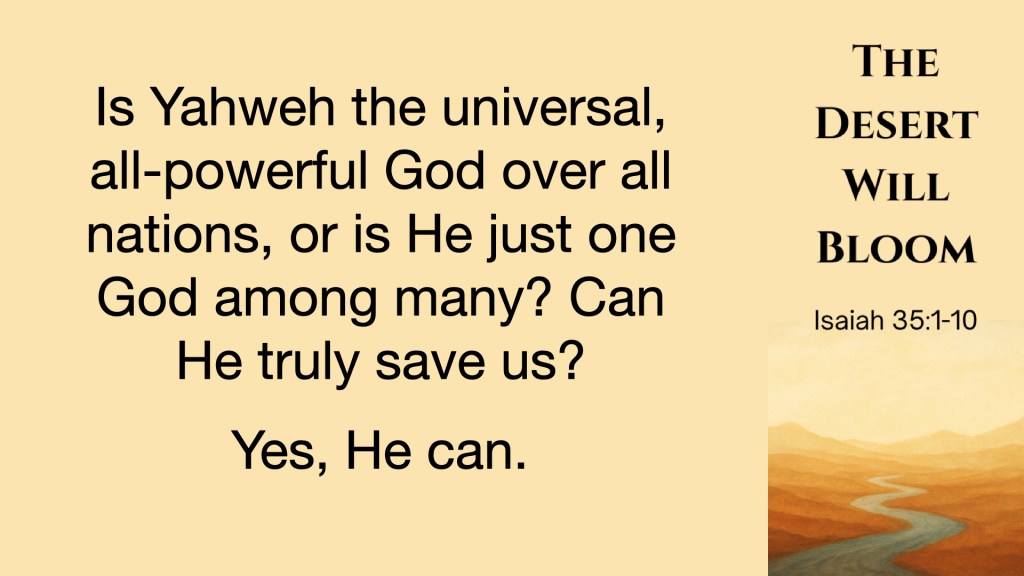 And Isaiah answers this question in chapters 13 to 35 with a resounding yes, he can. Yes, Yahweh can save us.