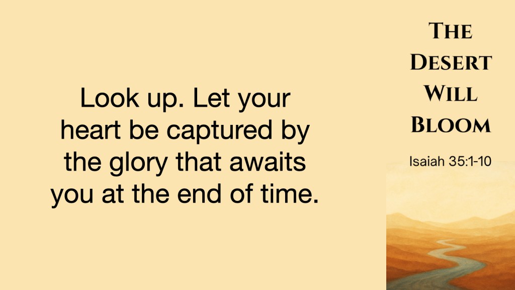 Dear friends, the point is not about snails. It’s about where our eyes are fixed. For we can miss the glory God has prepared for us if we stay focused on the grubby little things crawling in the mud of this world.