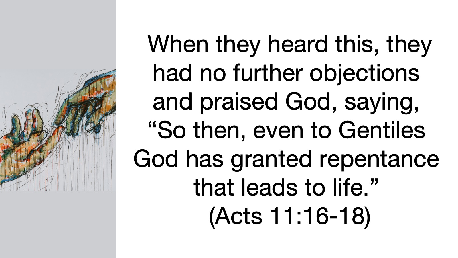 18 When they heard this, they had no further objections and praised God, saying, “So then, even to Gentiles God has granted repentance that leads to life.” (Acts 11:16-18)