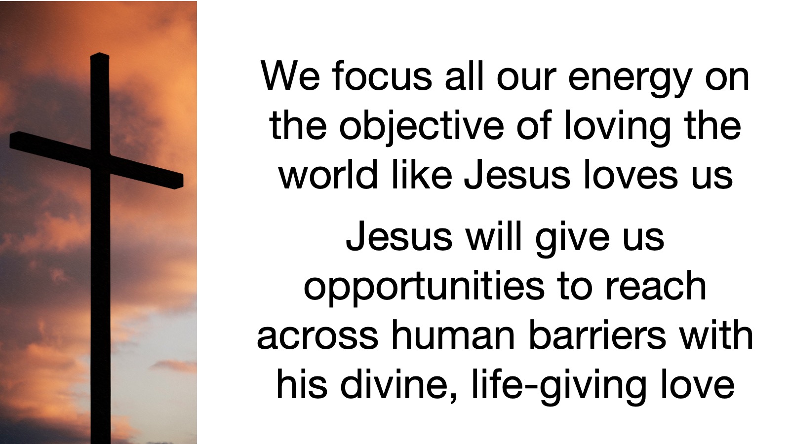 I suggest to you that this is how we best partner with God’s Spirit in breaching the barriers in our world to faith. We have no goals in mind to limit us, no prejudice to hold us back. Instead, we focus all our energy on the objective of loving the world like Jesus loves us. And when we do that, Jesus will give us opportunities to reach across human barriers with his divine, life-giving love. Amen.